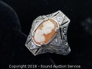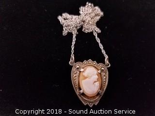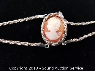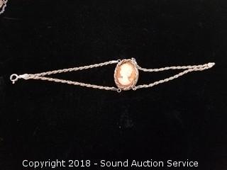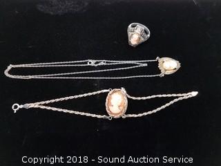 Lot #0365: Sterling Silver & Cameo Necklace, Bracelet & Ring