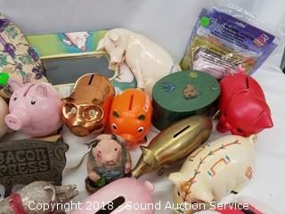 Lot #0382: Various Pig Decor & Piggy Banks