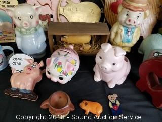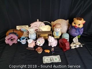 This auction consists of a multiple estates with a variety of different items! Includes a HUGE Block Stamp Collection (Card Stock, Stamps, Punches, Shelves and more), Vtg. Dressers, Curio Cabinets, Vtg. Unique Side Tables, Vtg. Organ, Yard Art Statuaries, Bird Baths, Various Gold, Silver & Fashion Jewelry, Beautiful Original Artwork, Dining Sets, Washer & Dryer, Leather Sofa & Chair Sets, Vtg. Writing Desk, Giant Clam Shell, Pig Figure and Banks Collection, Dansk Dish Set, Various Tools & much more!