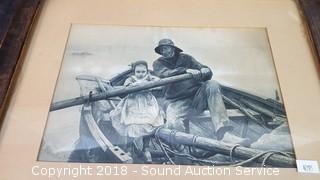 Framed and matted. Print looks to have some discoloration. Approx. 15.5'' x 12''.
