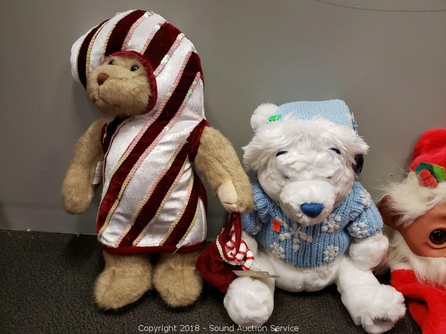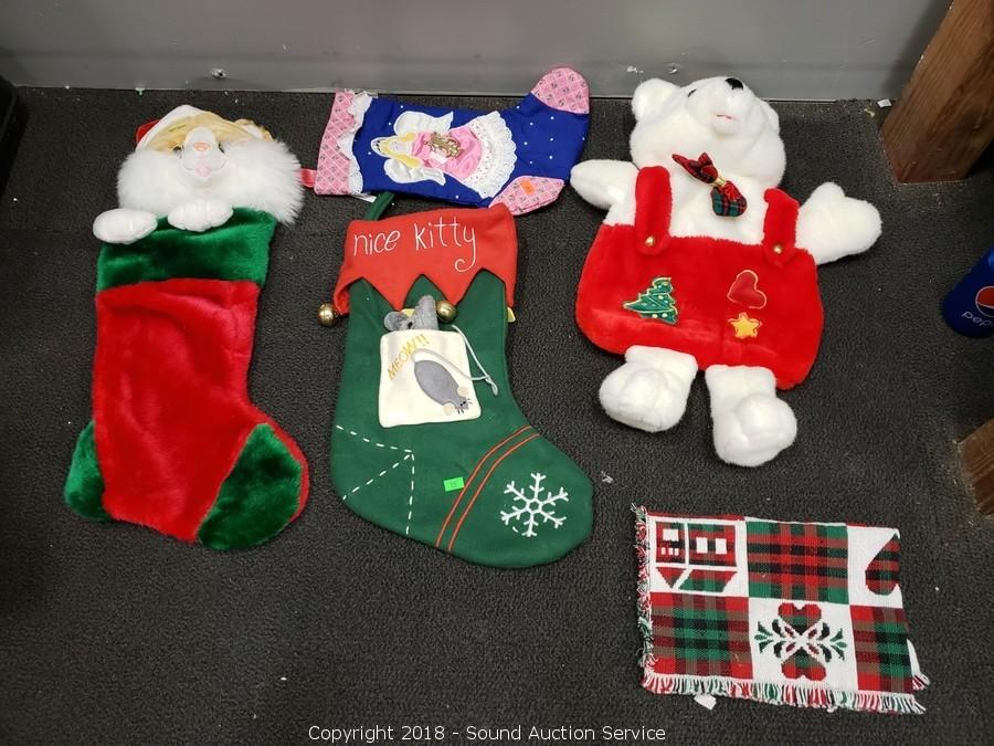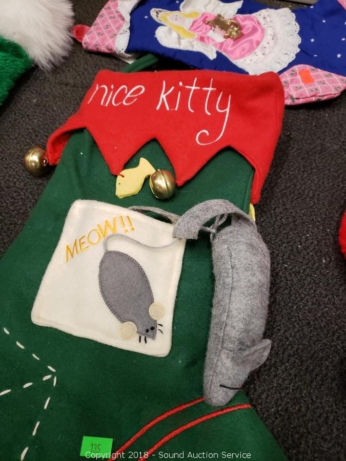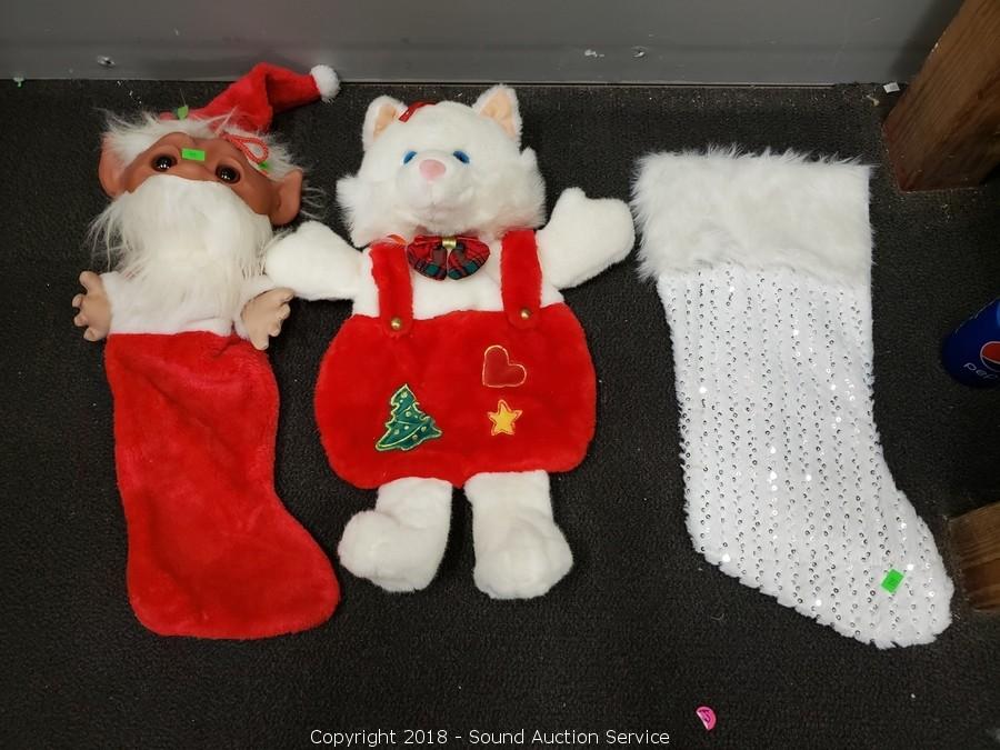 Lot #0135: 11 Stockings, Stocking Holders & Stuffed Animals