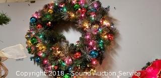 Lot #0203: 26" Lighted Decorated Christmas Wreath