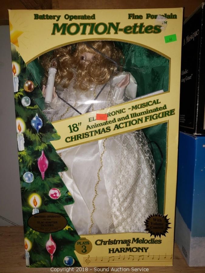 Includes 18" animated musical porcelain tree topper. Luminated Angles & More.