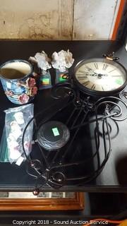 Lot #0010: Metal Art Deco Wall Clock, Elephant Decor & More