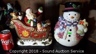 This auction consists of a variety of Christmas & Halloween Décor. Includes: Outdoor Décor, Lighted Wreaths, Porcelain Villages, Tons of Different Ornaments, holiday Cards, Tags, Gift bags, Santa's, Snowmen, Witches, Pumpkins & Much More!