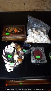 Lot #0009: Sea Shell Decor Music Box & Various Trinkets