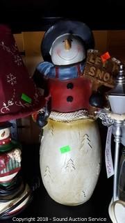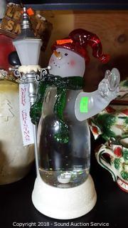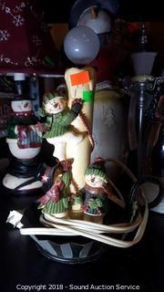 Lot #0019: Snow Man Lamps, Snow Globe & Figurines