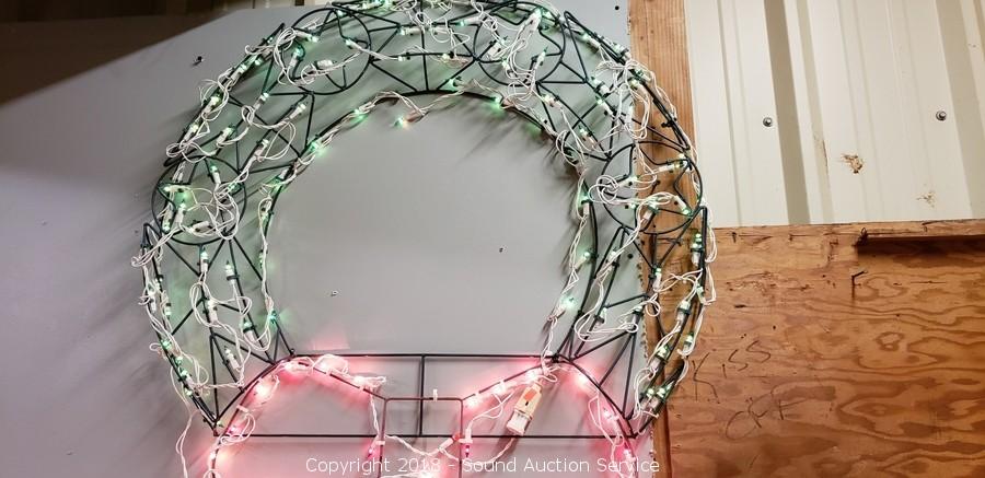 Lot #0195: Wire Frame Lighted Wreath Christmas Decor