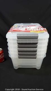 Lot #0210: 6pk 12.9QT Clear Stacking Storage Totes w/Lids