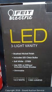 Lot #0190: Feit Brushed Nickel LED 3-Light Vanity Fixture