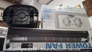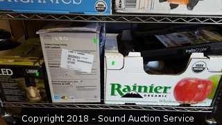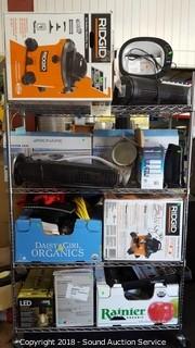 All items are either broken or damaged in some way. Includes: Digital Window Fans, Waterflosser, Porch Lights, Tower fan, Shop Vac, String Lights, Personal Fans, Extension cord, Desk Lamps, Flashlights, 24v Cordless Drill, Lanterns, Air Purifiers, Paper Shredder & More.