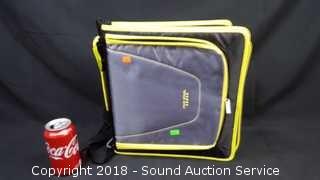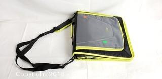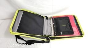 Black/Lime Green. Comes with pencil pouch, divider folders, and shoulder strap.