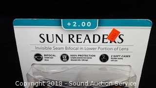 Lot #0181: Sun Readers +2.0 Invisible Seam Bifocal Glasses