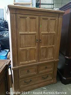 Drexel Heritage, Made in USA. Very nice can be an Armoire, Book Shelf or Entertainment unit Brass hardware. 68" tall, 44" wide and 20" deep.