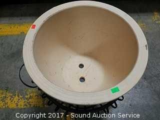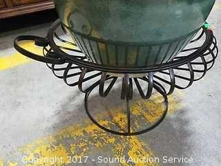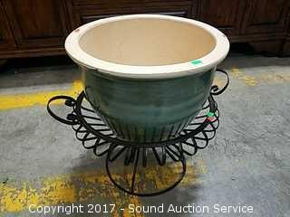 Lot #0044: Glazed Pottery Planter in Metal Plant Stand