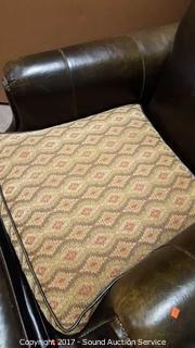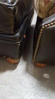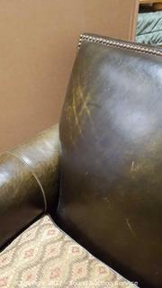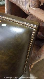 Lot #0055: Green Leather & Duck Feathers Chair & Ottoman