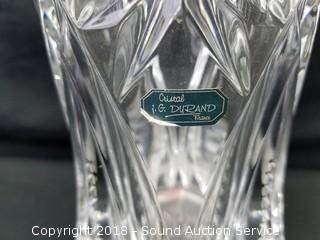 Vase is marked "Crystal Durand France", 8-1/2" H, 5" diameter. Most do not have any chips.