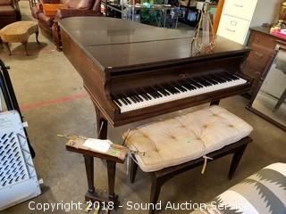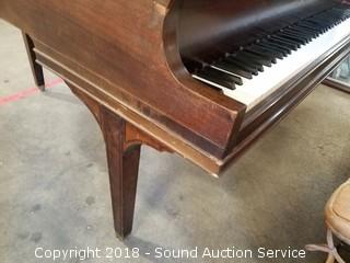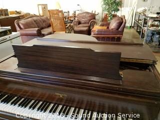 This auction consists of a large variety of Jewelry, Antiques & Collectibles. Includes: Massive Chainsaw Carving Bear, Antique Wheelchair, Vtg. Lawrey Roll Top Organ, Cement Mixer, Chest Freezer, Various Knick Knacks, Accordion, Vtg. Violins, Mahogany Bedroom Set, Vtg. Pendulum Wall Clocks, Grandfather Clock, Sohmer & Co Baby Grand Piano, Various Tools (Routers, Compound Miter Saw, Drill Press & More), Artwork, Vtg. Cookbooks, Novels, China, Cookware, Various Shelves & Much More!