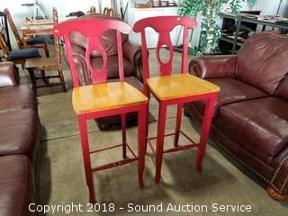 Lot #0120: 2 FDL 30" Cranberry Bar Stools