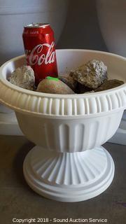 Lot #0019: 3 Decorative Plastic Planters & Various Rocks