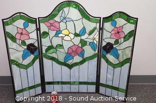 Lot #0195: Beautiful Leaded Stained Glass Folding Screen