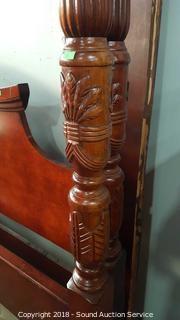 Lot #0025: Beautiful Mahogany Finish Poster Bed Frame