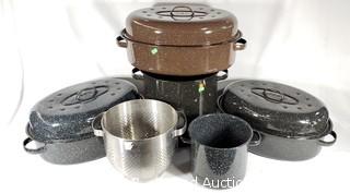 Lot #0385: Enamelware Boiling Pots & Roaster Pans