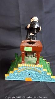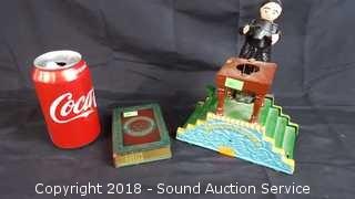 This auction consists of a large variety of Jewelry, Antiques & Collectibles. Includes: Massive Chainsaw Carving Bear, Antique Wheelchair, Vtg. Lawrey Roll Top Organ, Cement Mixer, Chest Freezer, Various Knick Knacks, Accordion, Vtg. Violins, Mahogany Bedroom Set, Vtg. Pendulum Wall Clocks, Grandfather Clock, Sohmer & Co Baby Grand Piano, Various Tools (Routers, Compound Miter Saw, Drill Press & More), Artwork, Vtg. Cookbooks, Novels, China, Cookware, Various Shelves & Much More!