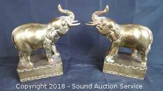 Lot #0364: Pair of Solid Brass Elephant Sculptures/Bookends
