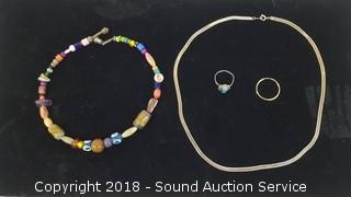 Lot #0048: 10K Earring, Sterling Ring & Necklaces