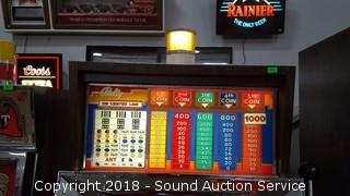 This auction consists of a variety of Gambling, Breweriana, Antiques & Collectibles. Includes: Coca-Cola Machine & Memorabilia, Vtg. Coin Slot Machines, Neon & Other Lighted Beer Signs, Professional Sound Equipment, Vtg. Furniture, Various Collectible Figures, Carved Sculptures, Sealed CED Laser Disks Films, Grandfather Clock (Works), AMS Moped and Much More!