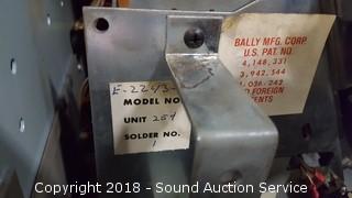 Model E2241-83. Consigner says it works, takes 5 cent coins, stuck in tilt, powers on, lights up, has the key. Has an electrical odor when powered on. Approx. 43" H, 19" W, 20" D.