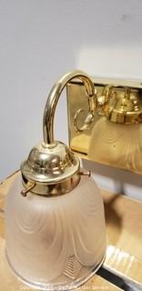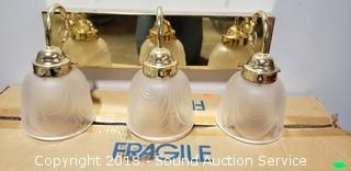 Lot #0320: 3 Fixture Brass Vanity Light w/Satin Glass Shades