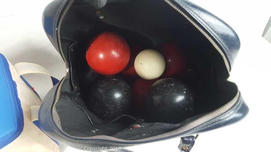 Lot #0144: Bowling & Other Bag w/17 Plastic Balls