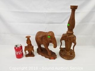 Lot #0260: Hand Carved Camphor Wood Elephant Figures