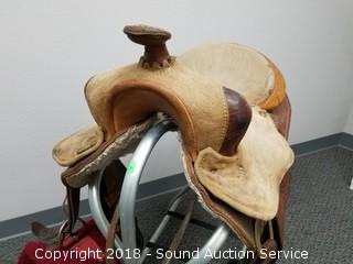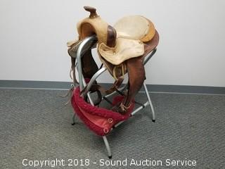 Lot #0077: Hand Crafted Leather Riding Saddle w/Stand