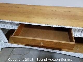 Lot #0319: Nice Wicker & Oak Sideboard/Table