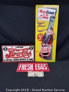 Lot #0313: Pepsi Cola & Other Tin Advertising Signs