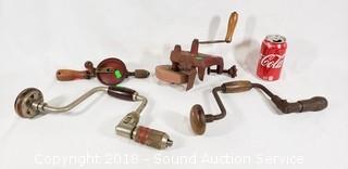 Lot #0420: Vtg. Hand Crank Auger Drills & Sharpening Stone