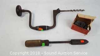 Lot #0196: Vtg. Soldering Iron, Auger Drill & Planer