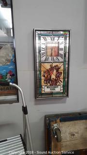 Quartz movement, clock is not working, clock face is a little offset. Approx. 25" H, 13" W.