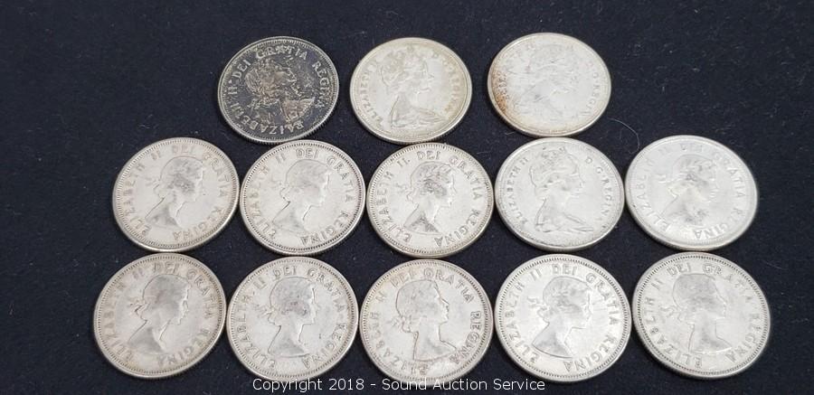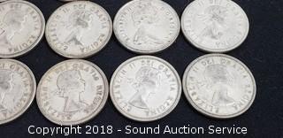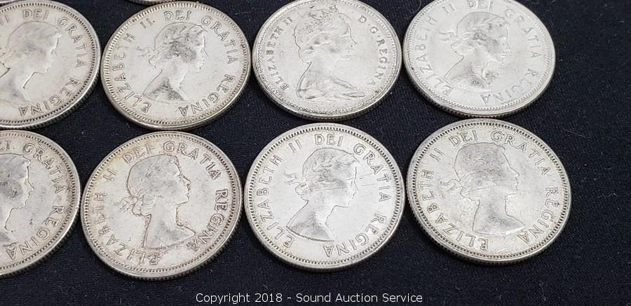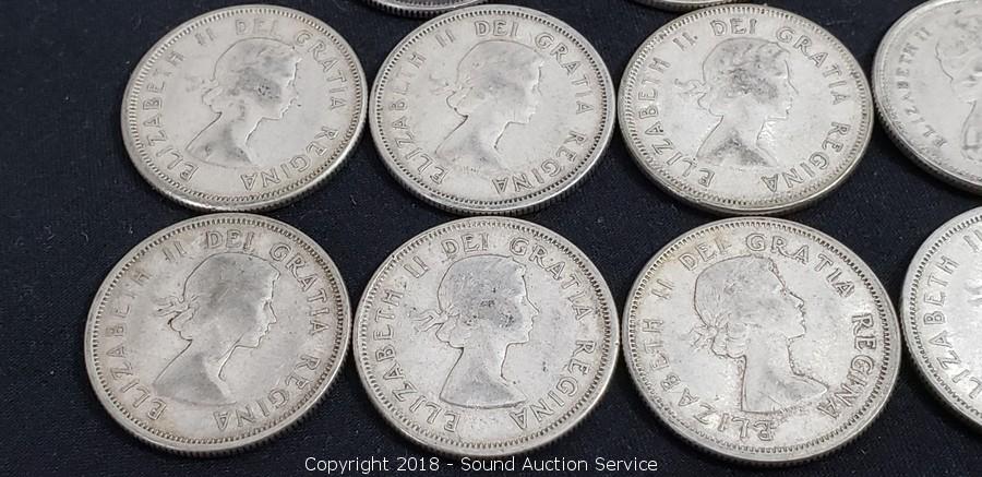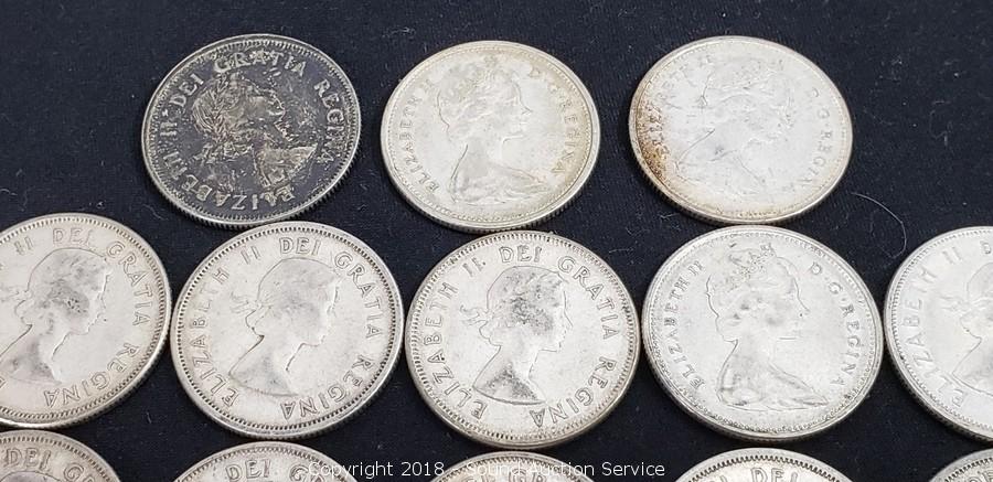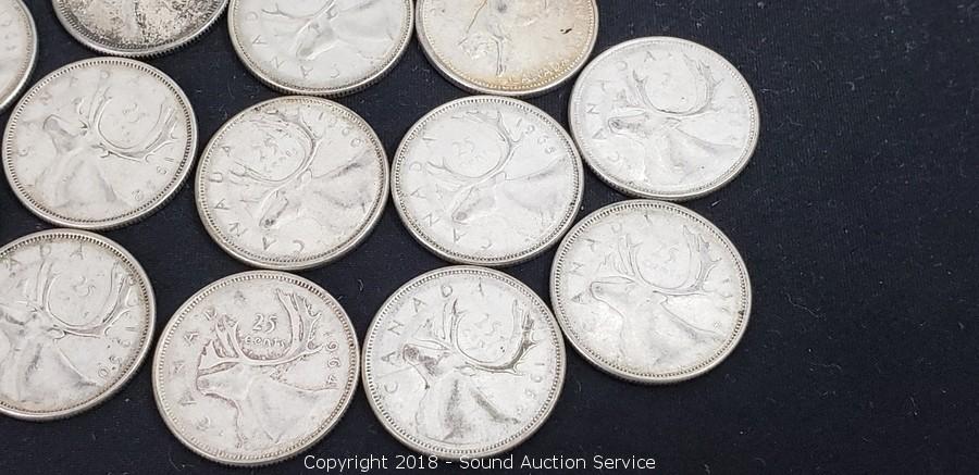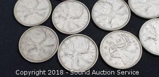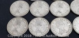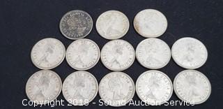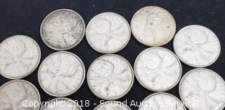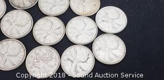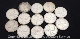 Lot #0222: (13) 80% Silver Pre 1964 Canadian Quarters