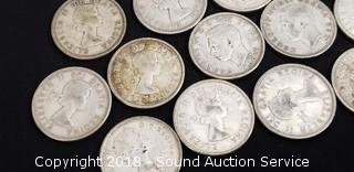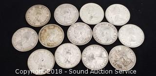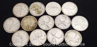 Lot #0223: (13) 80% Silver Pre 1964 Canadian Quarters