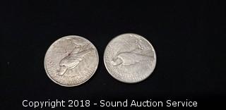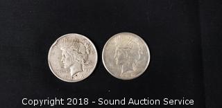 Lot #0147: (2) 1924 & 1925 Silver Peace Dollars - 90% Silver