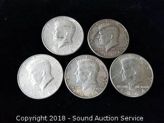 Lot #0053: (5) 1964-D Kennedy Half Dollars - 90% Silver
