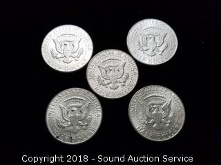 Lot #0069: (5) 1964 Kennedy Half Dollars - 90% Silver