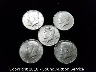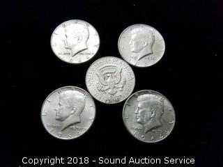 Lot #0070: (5) 1964 Kennedy Half Dollars - 90% Silver