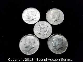 Lot #0072: (5) 1964 Kennedy Half Dollars - 90% Silver
