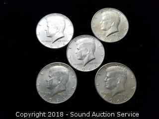 Lot #0075: (5) 1964 Kennedy Half Dollars - 90% Silver