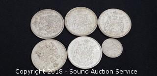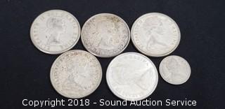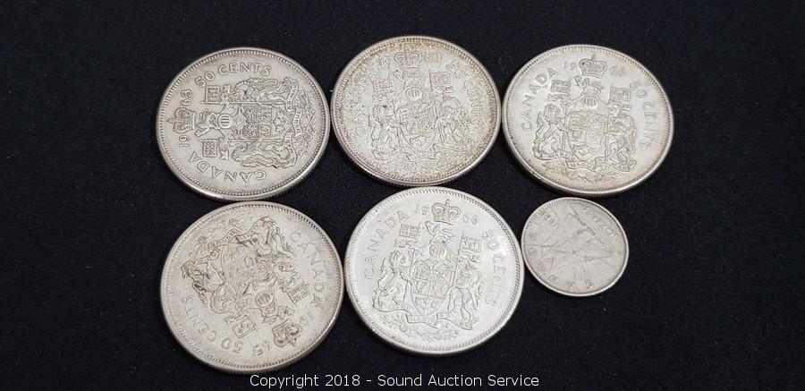 Lot #0211: (5) 80% Silver Canadian Half Dollars & 1 Dime
